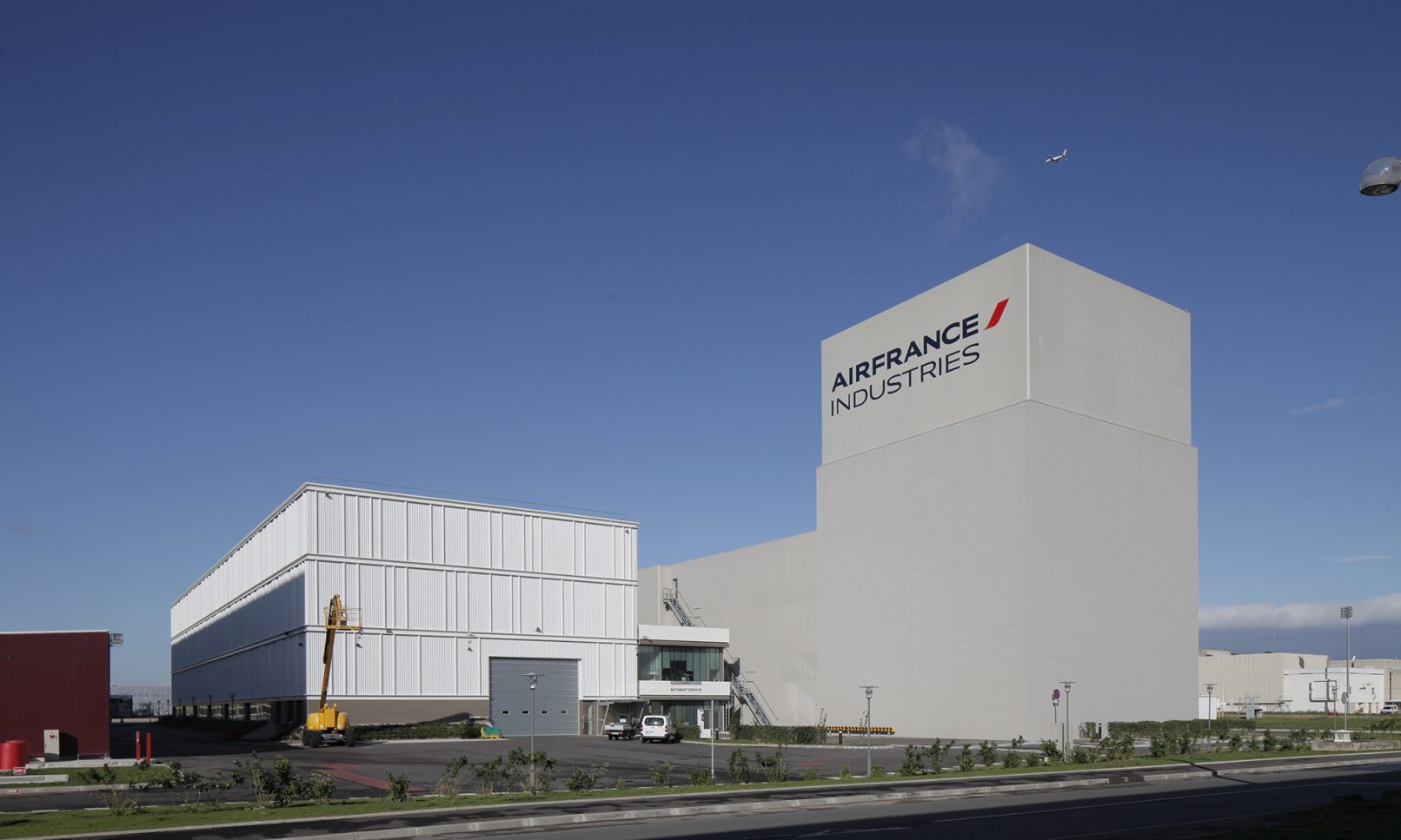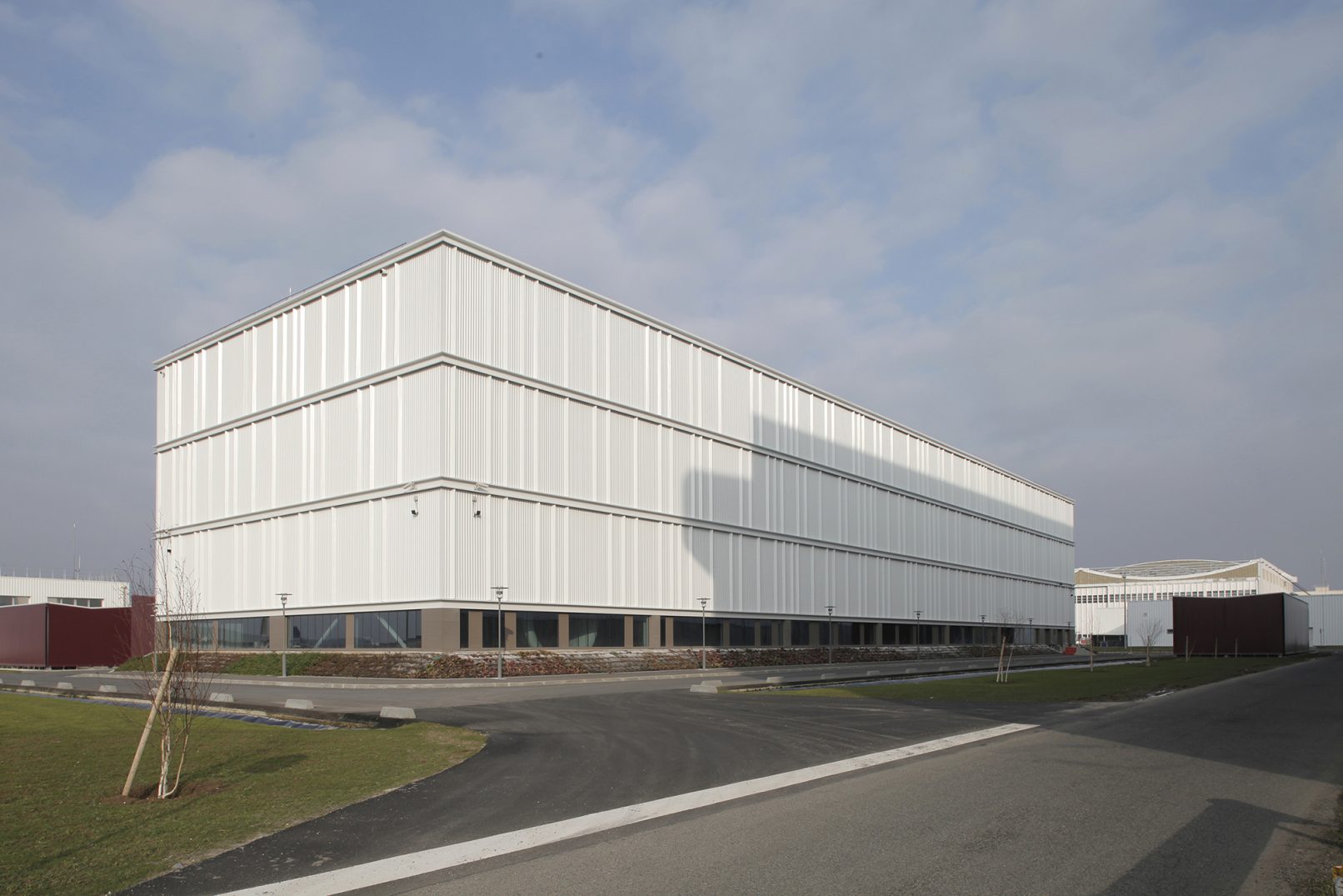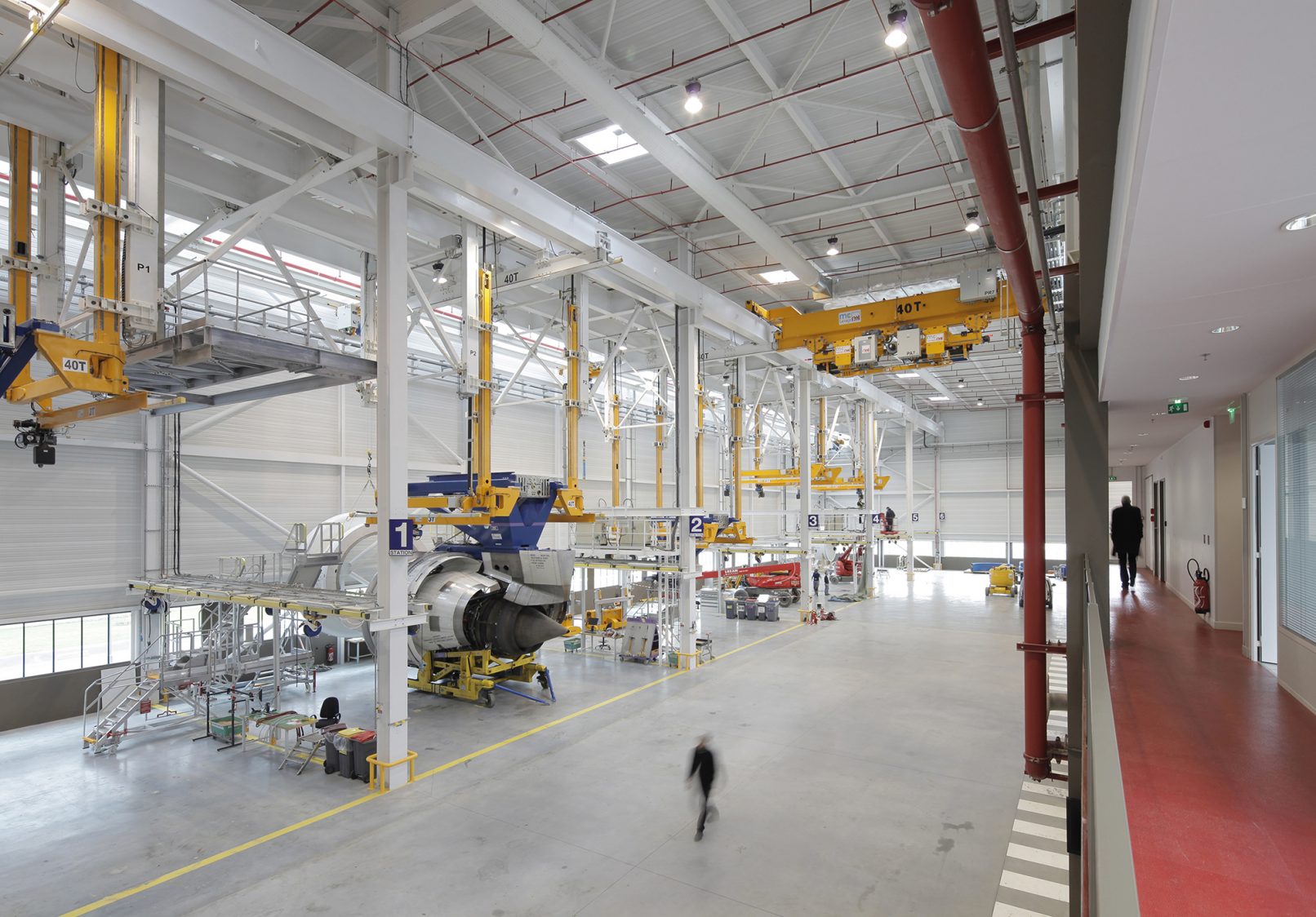 L’équipement industriel doit permettre le test à plein régime des moteurs d’avions. L’architecture doit tout d’abord atténuer les nuisances liées à ces essais : émissions de son à très basses fréquences, de gaz, etc. L’intervention reste discrète sur la cellule d’essais dont le traitement architectural se limite à la mise en place d’un béton matricé et à la suppression des verrues techniques. L’effort se concentre sur l’atelier de préparation où l’accent est mis sur l’illumination naturelle assurée grâce à une baie vitrée, un patio et une verrière zénithale.
